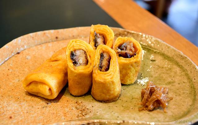 每个寿司里都有芥末,这种芥末是没辣冲味道的,鱼生厚切非常新鲜。另点了个玉子烧,老板还送多二块玉子寿司。
