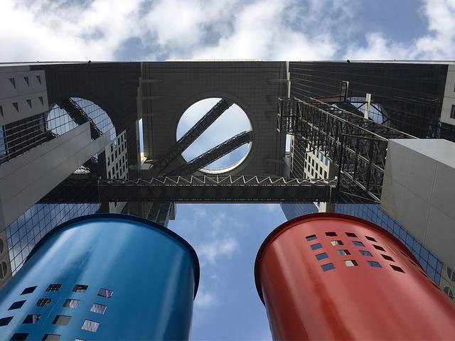 位于JR大阪站西北部梅田蓝天大厦是大阪市的地标性建筑。