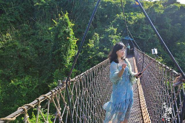 在丛林之中颤颤巍巍的索桥堪称这里独特的景观。它横跨两山之间,全长168米,离地近40米,是海南目前跨度最长、离地最高的铁索桥。走在索桥上,近处是山峦起伏,远处则是辽阔的大海,各种鸟儿在身边名叫,花香在身边围绕,所谓“天堂”,名副其实。