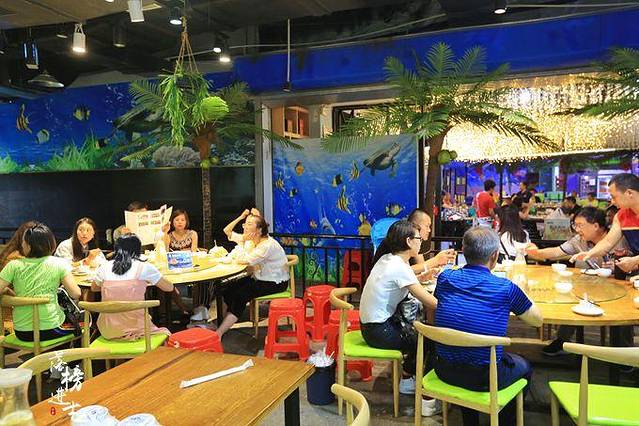 吃海鲜是人越多越划算,品种可以多选几样。光顾店里的人大多是三五成群的好友或家人,围坐在木桌前,其乐融融一起享用海鲜饕餮大餐。