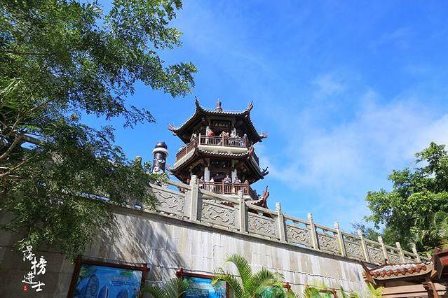 沧海楼是公园的标志性建筑物之一,号称南海第一楼。这样的名气极富浪漫色彩,总让人想起“沧海横流”、“沧海一粟”、“沧海桑田”的意境。沧海楼高约20米,登楼而望可俯瞰整个亚龙湾全貌,上有天高云淡,下有烟波浩渺,极目之处海天一色。