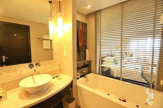 服务和环境让人深深的觉得“这钱花得值了”。卫生间、淋浴间、和浴缸干净整洁,点缀的鲜花添加了几许浪漫气息,卫生间和卧室间有木质卷帘隔开,打开时窗外的阳光便倾斜而下,关上时便形成私密的小空间。