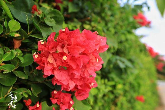 同样是花,或者因为空气干净,或者因为阳光灿烂,这里的花显得格外艳丽。一侧是海水,一侧是热带风情浓郁的绿植,一切如画卷般美妙。
