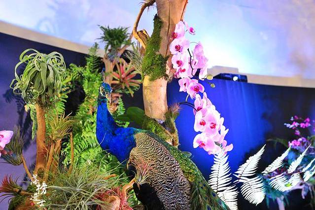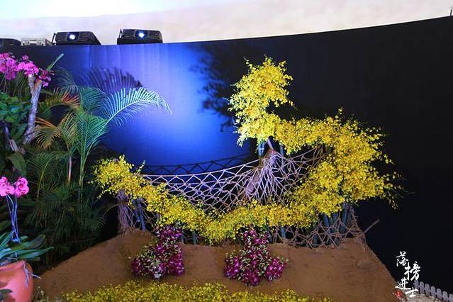 笔直挺拔的椰子树下,成片的花朵点缀其间,变成梦幻般的花卉圣地。数以千计的花在人们的创作加工下,呈现出各种造型,充满了灵气,变得有趣和而迷人。