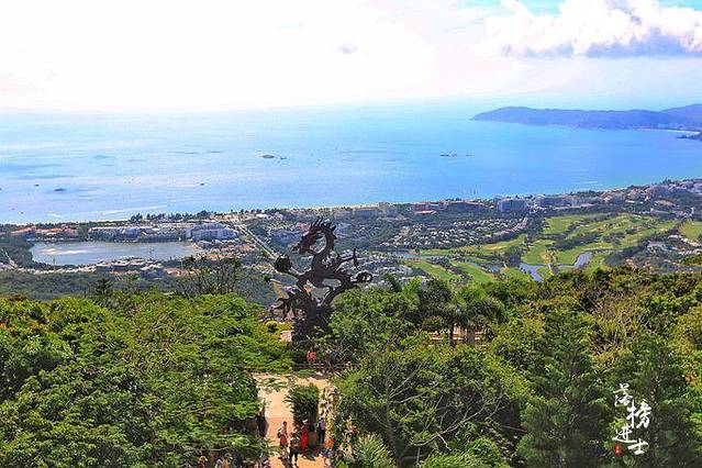 龙行天下位于公园山顶处,铜像雕塑在一片绿树中格外雄伟,仿佛一条巨龙腾空而出,守护着整个南海,守护着整个亚龙湾。