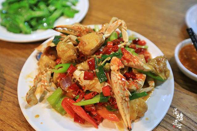 店家已经提前将螃蟹切成小块,一块块直接扳开就能吃,相当方便。螃蟹放上辣椒爆炒,辣椒入味后,螃蟹自带的腥气荡然无存,咬上一口都是味道超好的蟹肉。