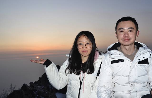 到了山顶大概需要三个小时左右(一路走走停停),中间有一段路特别陡,叫做十八盘。日出时间是在早上七点半,所以要看日出的朋友还是要抓紧时间的。到了山顶之后会有人给你拍照,但是建议自己带相机或用自己的手机拍照(不得不吐槽那些人的拍照技术~姿势太土而且照片巨贵,30一张吧)。如果你运气好的话,应该能看到美美的日出了,山顶的风景,尤其是日出真的是绝美的!