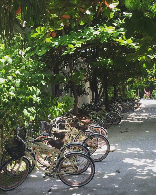 但其实小爱觉得,更好的度假方式是把孩子带在身边:每个房间有配自行车,有成人版和儿童版之分,不妨带着孩子在栈道上骑自行车逛逛;