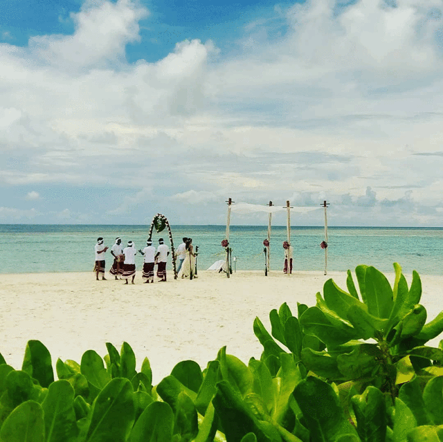 岛上目前设计了3款婚礼套餐,2款沙滩婚礼和1款海底婚礼。专业的婚礼策划师会为新人量身定制婚礼仪式和内容(但小爱觉得其实都差不多,只是给更多钱加更多服务,比如头饰、妆容、美容等而已)。以下是结婚的布置和婚礼仪式的样片,供有需要的朋友参考: