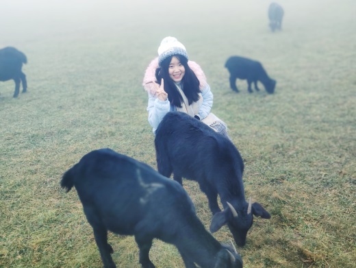 在这里游玩一会后我们又去了第二站,仙女山的大草原,以前在百度图片中也看过,一望无垠,还有许多动物。这次比较遗憾的是雾太大了,看不了多远,只能看到眼前的,不能亲眼目睹它的宽广与美丽。来这里游玩的游客大多是为了摄影而来,因为雾大的原因,所以我们不敢走远了,怕到时候迷路,还有许多鸟类,似乎它们也怕迷路,都不敢在天空上翱翔,只在草地上嬉戏。还有黑山羊,刚开始在低头吃草,后面有游客买的零食还是什么在那喂食,许多山羊就开始在那儿抢食,还有的羊把前腿抬起来,搭在喂食的那位游客身上,十分有趣。