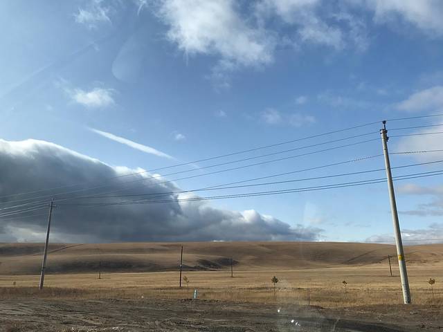 可能是更加深入大草原,中午过新巴尔虎旗的时候风刮的越来越大,有很多草被吹到路上。车速要慢很多。 越开越荒无人烟。我喜欢