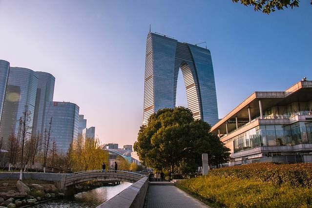 苏州 以东方之门 苏州 中心为切割点,把 苏州 的古韵与时尚一分为二,仿佛一步便能跨入两个世界:园区与姑苏区。