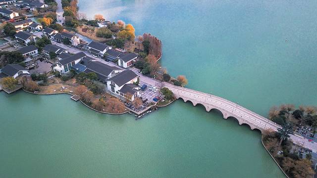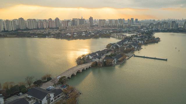 同样是围着金鸡湖,李公堤的与众不同之处在于这里是金鸡湖唯一的湖中长堤。