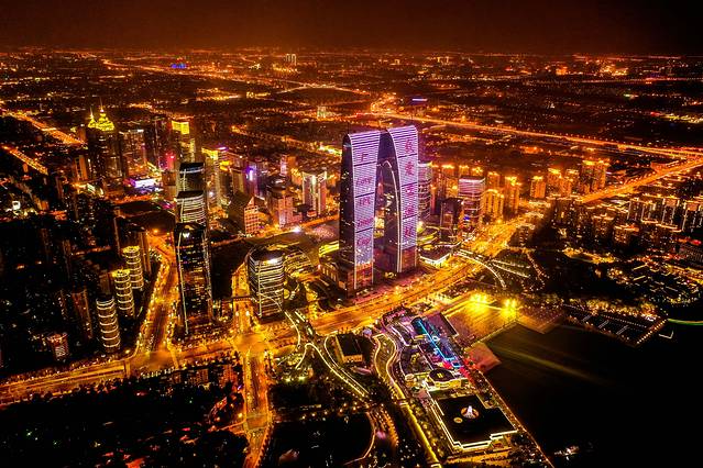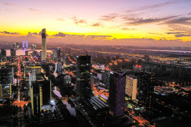 其中最霸气的就是晚上的夜景,航拍的效果超级赞,园区的繁华尽收眼底,璀璨的灯火点亮了开启了姑苏城的另一面。(ps:其实是禁飞区,航拍的时候,还被保安叔叔警告过……)