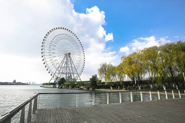 在这里,不管是在摩天轮的最顶端许下心愿,还是坐在浪漫的旋转木马上,或是选择乘坐游船前往金鸡湖湖心岛,都是非常惬意的方式。