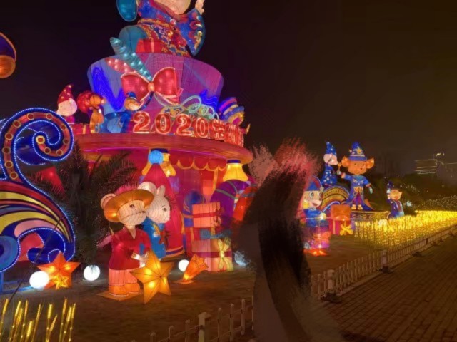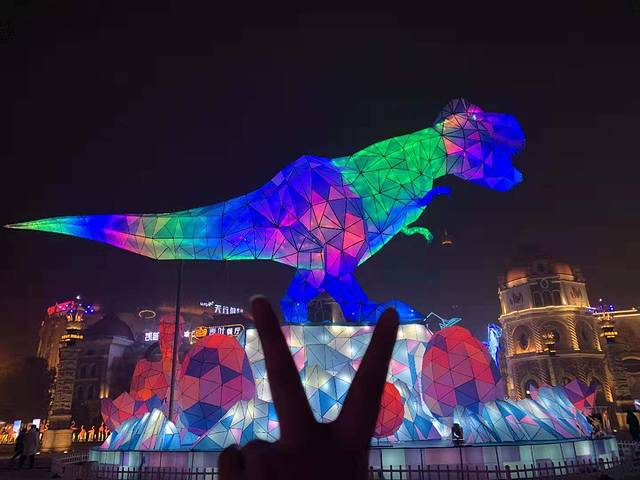 晚上到达的时候,天已经黑了,正巧看见有灯会,就朝着灯会那边走去,总体人不是特别多,小孩子挺多了,门口增设了很多新的设施,各种大型恐龙展示。