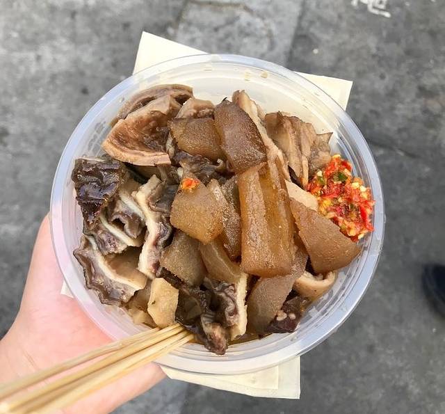鸡爪是隔壁店的招牌,酱鸡爪很酥,吃鸡爪重点不是吃肉,而是骨头、筋、味道。这个鸡爪就把这几个都做的很赞,简直是神仙鸡爪了……后来我们又去民信吃了水晶凤爪,还是觉得这个鸡爪更好吃。