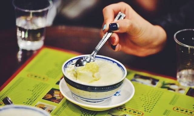 姜撞奶是用姜汁和水牛奶做的双皮奶。姜味很浓很浓,有点辣,如果不排斥姜味,是推荐的。姜撞奶只有热的,这样才能有驱寒、调气血的作用吧。