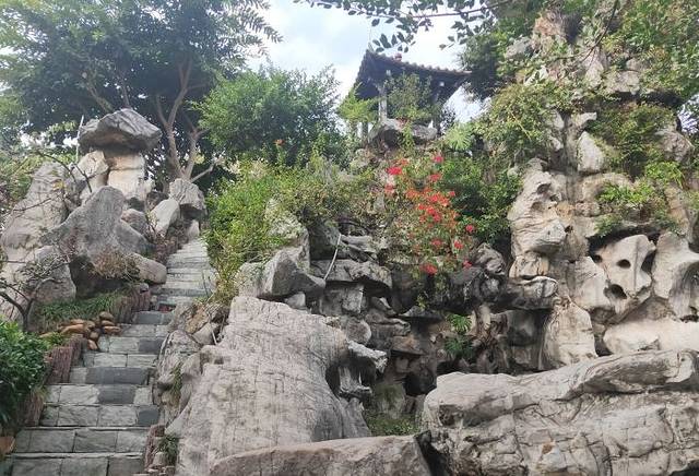 清晖园里有可以攀爬的假山,但一定要注意安全,而且上面人很多,有序排队上下保证大家的安全。如果有小孩子的话,最好大人多牵着一点。