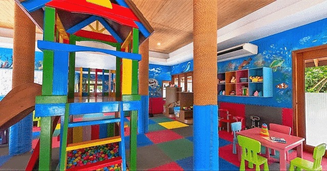 第二天逛岛屿逛到了岛上的“温柔的心”儿童俱乐部,俱乐部面积50平方米,提供各种适合小朋友的游戏和活动。俱乐部拥有一个室内玩具区、小型图书馆和水上乐园。
