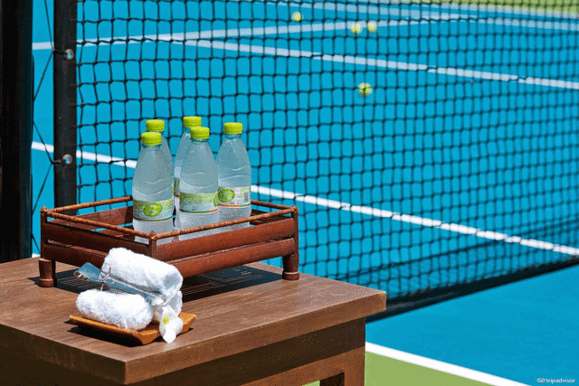 小爱听说神仙珊瑚岛的运动中心设施非常的完善,所以也特地去逛了逛,果然一进去就看到两个大网球场,而且网球场还是全天开放的,无聊随时都可以来这里找人切磋一把,甚至还有专门的网球教练给你上课。