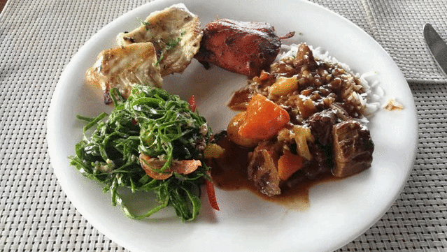 工作了一上午,是时候去祭祭五脏庙!岛上共有2家餐厅1个酒吧1个咖啡馆,全都在白金一价全包范围内。小黑把我们带到主餐厅(Matheefaru)吃自助餐,这里从到早晚都营业,提供自助餐或者点餐,菜系很多,我觉得也挺符合中式口味的。