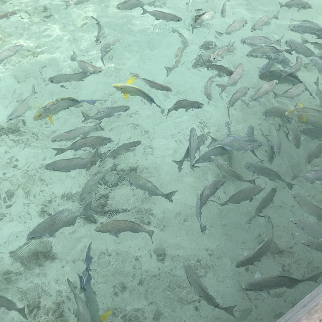小岛的浮潜环境在小爱去过的马代岛屿里算非常不错的。由于神仙珊瑚岛的位置与众不同:一边是泻湖,一边在两三米左右长的珊瑚带后突然变海沟,海沟与珊瑚的边缘处动植物资源非常丰富。所以我在浮潜时候看到了海龟、小鲨鱼、海鳗、魔鬼鱼...还有很多叫不上名字的小鱼。