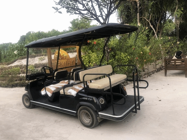 由于岛比较大,所以会有管家带领我们乘坐电瓶车(听小黑叫它buggy)入住,等等再跟着中文服务员开始我的考察。从码头到我住的日落沙滩别墅的距离还挺近,而且附近就是主餐厅和儿童俱乐部,位置还不错诶!
