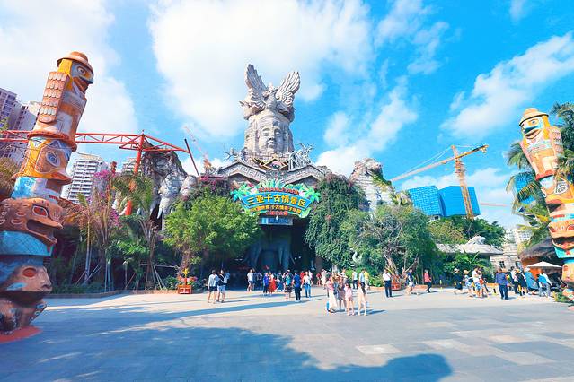 园内各景观景点居高临下,处处都有着海阔天空、凭海临风的意境。但如果时间够的话,一定要登上山顶公园。这里既有天然胜景大佛石、热带雨林,又有云霄飞龙大型铜雕、沧海楼等。