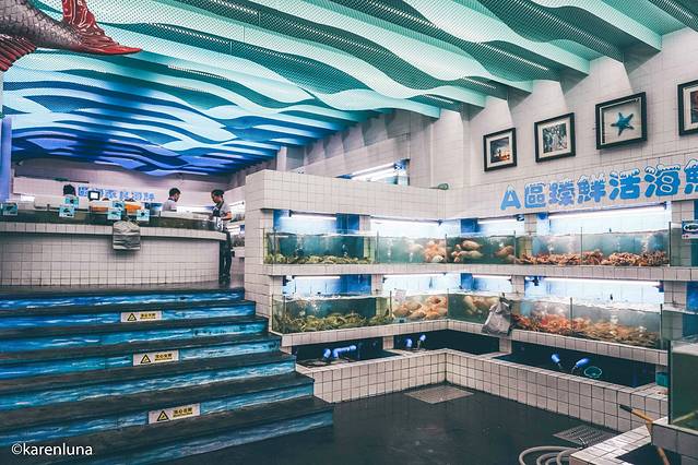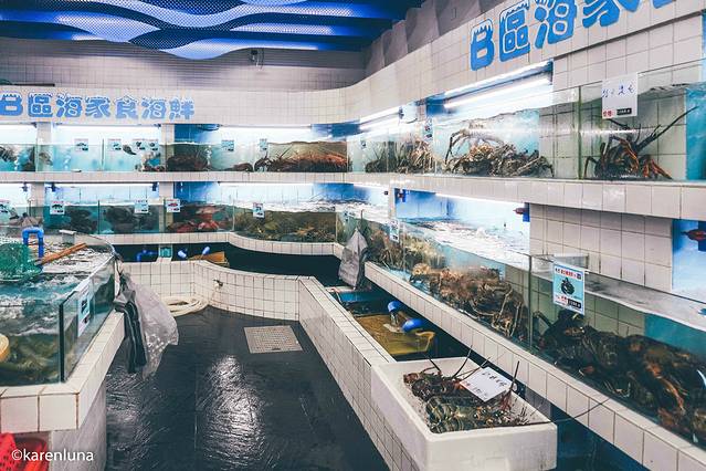而走到建筑里,最先看到的就是我最爱的一大堆海产品。上下两个半层的卖场看上去十分整洁安静,每个水池中就是一个品种,种类丰富到数不过来。