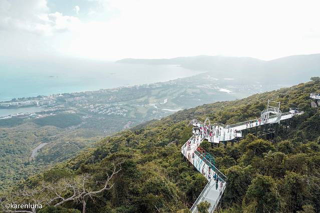 离开索桥乘车来到的下一停靠站,便是位于亚龙湾热带天堂森林公园之巅的网红打卡点:全海景玻璃栈桥啦。