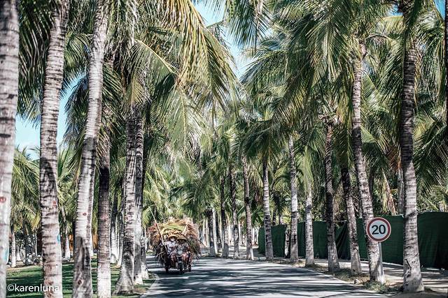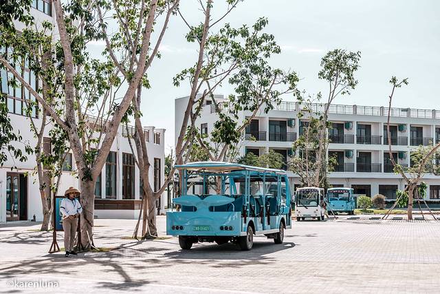 从游客中心乘坐电瓶车,一路穿过椰风树影的沙林小路,行驶过壮阔瑰丽的礁石沙滩,10分钟左右的功夫就到了到牛王岭的面前。