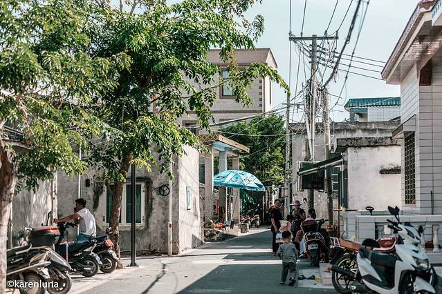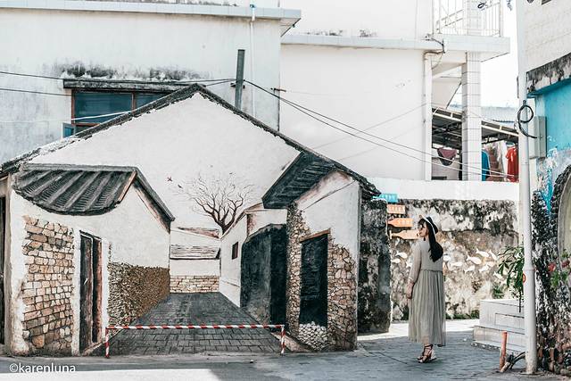 刚进村子,看到的都是2-3层用瓷砖砌成的小洋房,但越往里走,巷子就越过狭窄,房屋建筑也就越显古老,一个个越来越有特色的墙绘也越来越多,时而鱼群游过,时而又多出来一条路,虚虚实实的很有意思。
