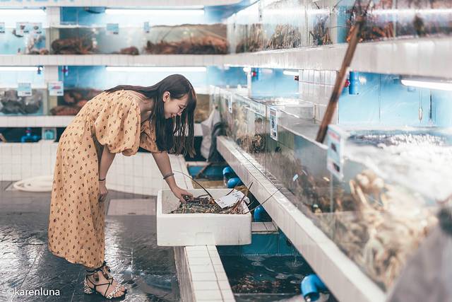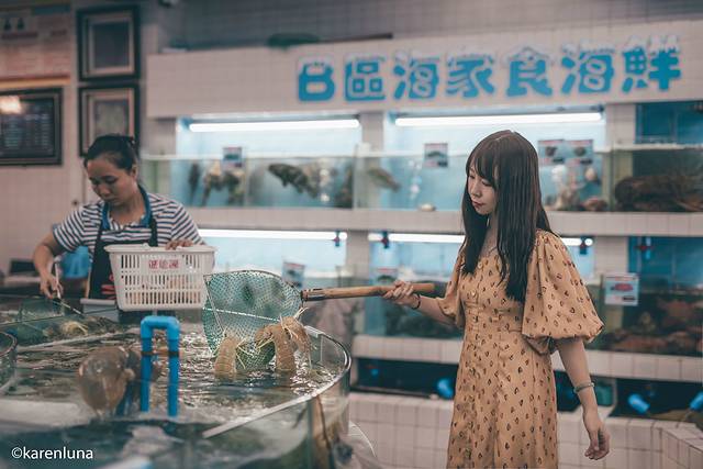 在北京买螃蟹的时候,各种五花大绑,光是绳子的重量就占了很多,但是在这里,那种过度包装丝毫没有,称重也是公开透明,这样才是纯食材的重量,很是公道了。之前还在担心会不会缺斤短两,现在完全可以放心了,于是开心的挑选了几种我最爱的螃蟹、北海蚌仔、红口螺、草虾和一整条石斑,便前往餐厅加工。