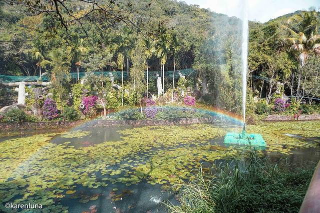 湖水从天而降,在阳光的照射下居然形成了一条超美超完整的彩虹,与雾雾蒙蒙的湖中亭映衬着,多了些灵性。我记得在以往的游记里我曾经说过,遇见彩虹就寓意着会有好运,而在这里,岂不是天天都要有好运了~