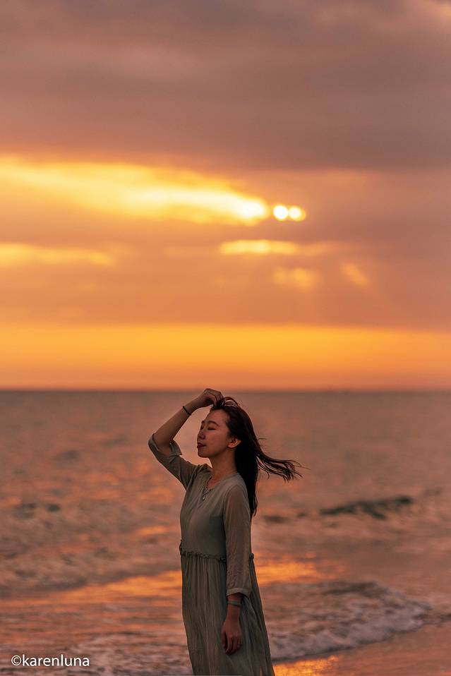 沙滩上的人们纷纷拿起相机,记录下这短暂而难得的美景,我自然也不能免俗,跟妈妈互拍着,让这份美景永远定格在最灿烂的时刻。