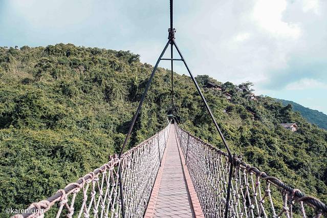 去之前就被朋友提醒,因为索桥仅能供一个人通行,很多人又免不了在这里来一张电影打卡照,所以经常会出现人多排队的现象,于是特意预留了足够长的时间在这里。没想到下午的游客数量居然寥寥无几,真是超幸运。没有摇晃索桥的游客,也没有一直停在桥中间拍照停滞的行人,有的只是远处辽阔的海岸线和周围树丛中的鸟语花香,仿佛置身于海天仙境,让人舒心不少。