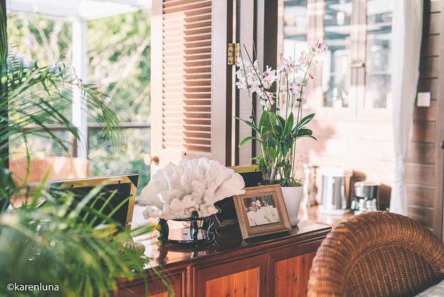 继续沿着雨林栈道穿梭前行,一个摆满兰花的古朴中式庭院若隐若现的出现在眼前。