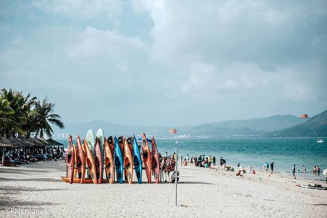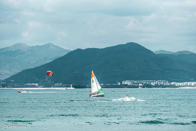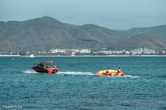 除此之外,海面上的娱乐项目也是应有尽有。海上摩托车、拖拽滑翔散,快速的香蕉船、优雅的帆船、刺激的水上空中飞人,一个又一个刺激的运动在海岸边接连上演着,看得我真的有些跃跃欲试呢。