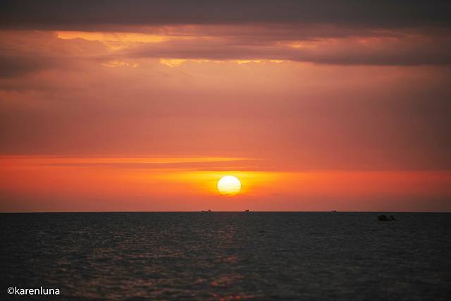 蛋黄般又圆又大的太阳渐渐从云雾中露出,整个天空都呈现出暖暖的红色。虽然世界各地的日落也是没少见到,但如此绚烂唯美的日落绝对可以算是数一数二的了。