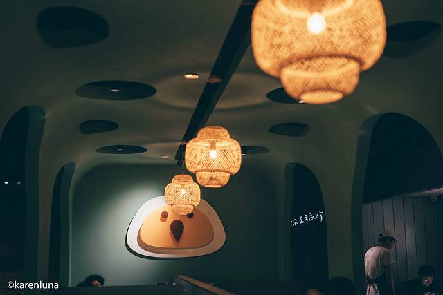 走进其中更是一种热带椰子风的气息扑面而来。淡绿色的外墙,搭配着浅棕色的桌椅,桌子上一个个竹藤编制而成的吊灯,让人还没开始吃饭就有一种清爽舒适的度假感,真是让人不由自主的愉悦放松。