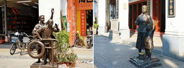 还有些展现当年老街浓浓市井味的雕像,老爸茶,黄包车,砍椰子,小憩等。