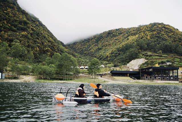 手动的透明小船,新手也能很快掌握。平衡要把控好,离湖面很近,可以在湖中心任他飘摇。再拿着船桨,慢悠悠的划回去。