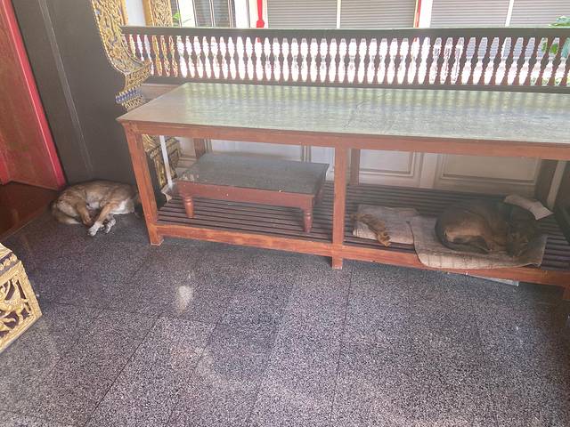 猫猫狗狗都在寺内休息,我下辈子要是投胎变成一只猫猫狗狗我一定要选择出生在泰国,这也太幸福了