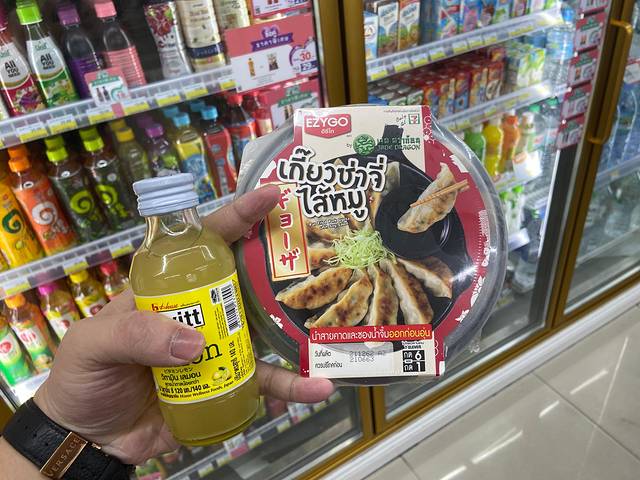 柠檬水和煎饺,这顿我记得吃的挺贵的,主要是煎饺贵,应该最后合人民币25-30左右,是的,30块钱在711就是高消费了