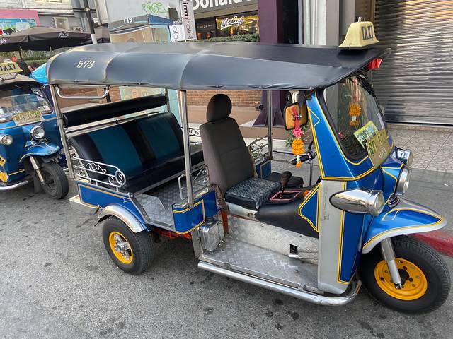 蓝色的我也没坐过,就随手拍一下,不过看上面TAXI的字样,这时清迈的的士?不得不说我在泰国其中一笔占比比较高的消费就是GRAB,最后合计了一下少说坐了700多人民币,这个后话了