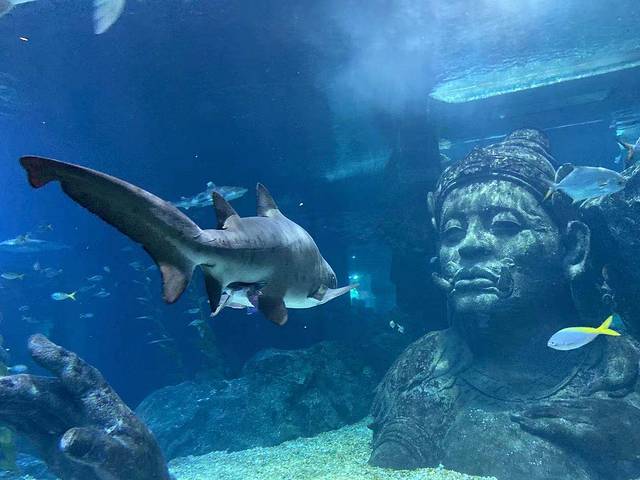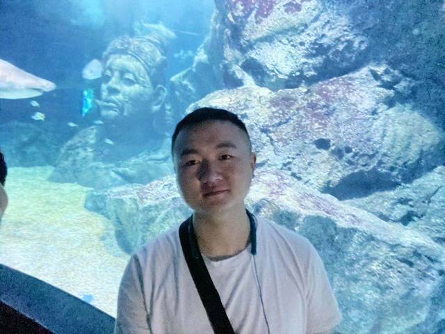 等了十分钟终于抓怕到了鲨鱼正视铜像的照片