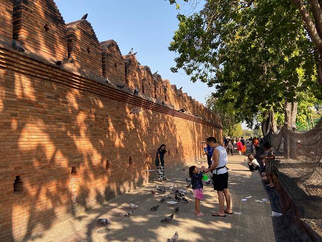 其实总的来说塔佩门没什么好看的,就是砌的非常好看的清水墙做旧,国内随便拉个砌体师傅出来想要多少给你做多少,只是附带了泰国文化的一层面纱后变得高大上起来,不过我也没空了解这些文化,随手喂了喂鸽子打完一层卡就开始围绕着塔佩门转