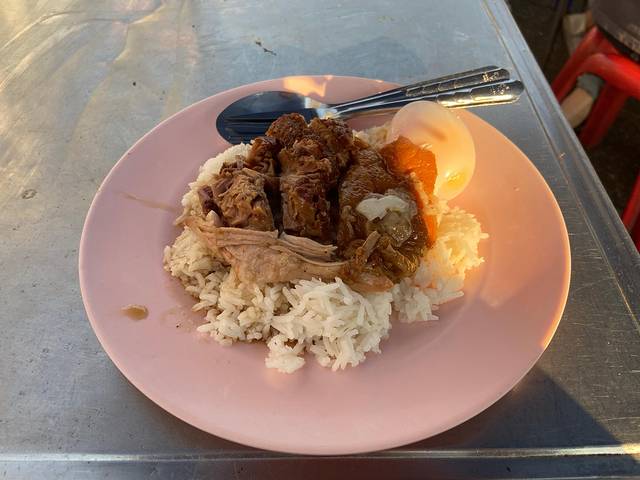 小哥像看乡巴佬一样给我端上一盆猪脚饭瞬间浇灭我的期望,我以为还很有仪式感需要漱个口啥的,原来就是猪脚肉加蛋加白米饭=凤飞飞猪脚饭