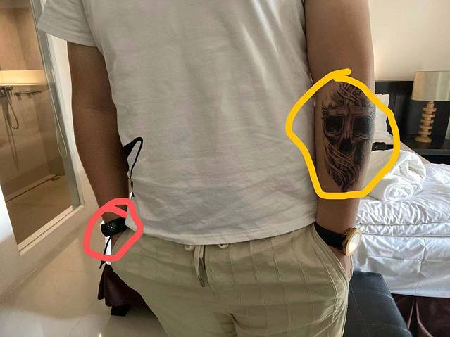红圈为我在网上购买的防身刀,第一次出门在外,怕没有保障,这把刀有五个作用,平时放在手上是很好看的手环,在遇到麻烦的时候 1、打开卡扣作为利刃防身 2、手环附带打火石可以生火 3、有口哨可以用来报警 4、上面配有指南针 5、编制的手环可以打开绳结用作牵引或者攀爬工具,这把刀其实更多的是为了求生,不过被我拿来防身了。黄圈是我买的纹身贴,你问我买这个干啥,还是那句话,第一次出门在外没啥别的,怕被人欺负,贴个纹身装大哥,不过你别说还挺好看,持续时间3天左右,虽然挺难搓的,不过帅就完事了。